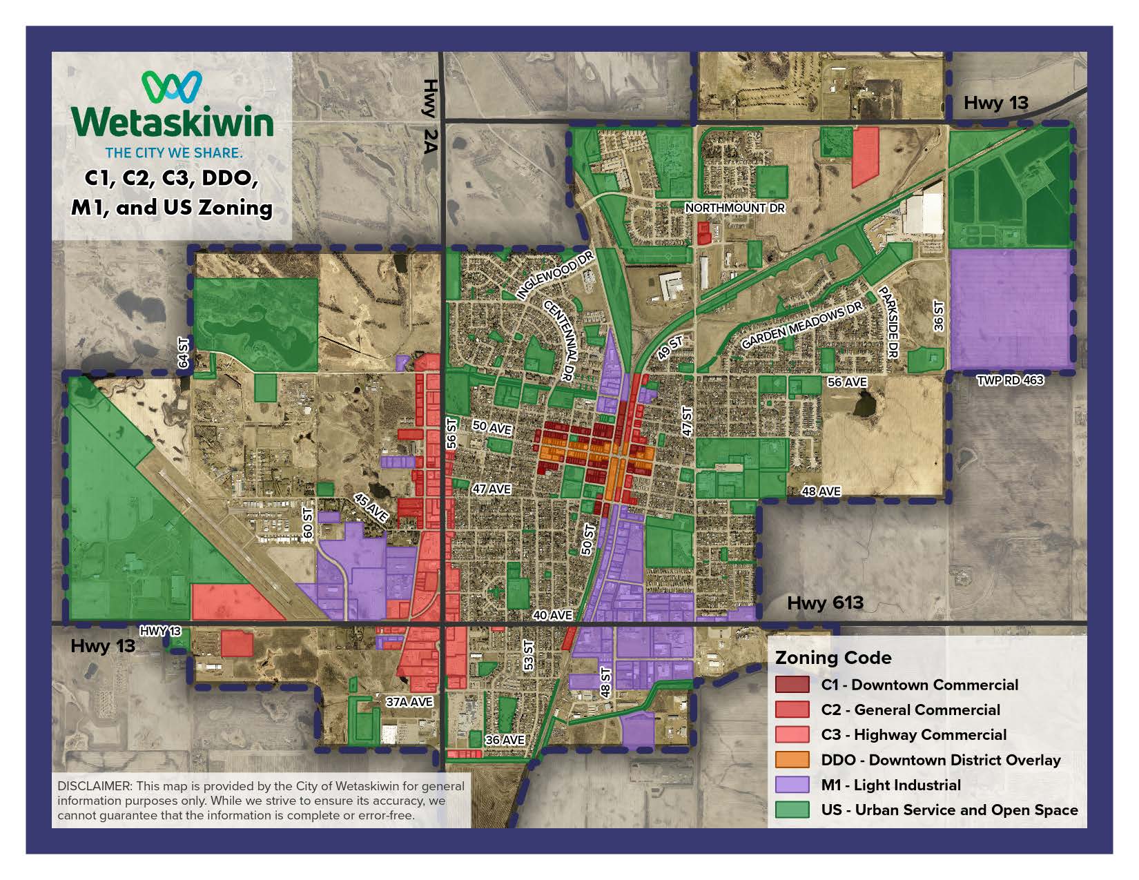 You are invited to provide input on Bylaw 2104-26. This bylaw would allow Community Support Service as a discretionary use in the commercial, industrial, and institutional districts shown on the map below.